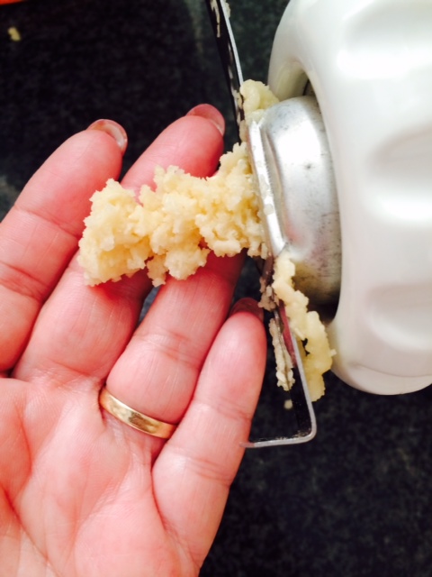 - מניחים בצד ל-15 דקות. בינתיים מרכיבים את המטחנה עם החלק המיוחד לעיצוב העוגיות.
