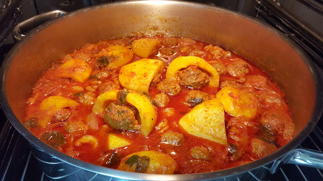 - מכניסים לרוטב את תפוחי האדמה שרוקנו ואת הממולאים, נותנים לרתוח עוד רבע שעה, מנמיכים את האש לשעה נוספות.