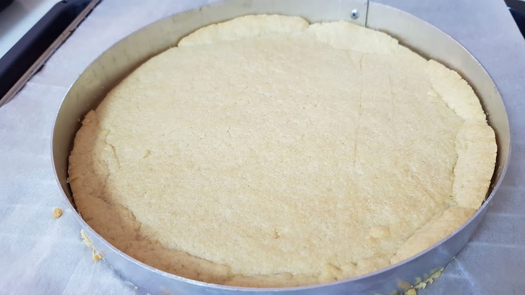2. מחלקים את הבצק לשני חלקים שווים, מרדדים על נייר אפייה עיגולים בקוטר 26 ס"מ בעובי 1/2 ס"מ (השתמשתי ברינג ראו תמונה בהמשך) מהדקים את הבצק, אפשר להשתמש כתחליף לרינג בתבנית ללא תחתית ,כך עושים עם החלק השני.